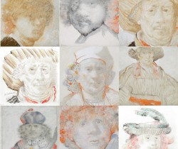 A Mozart light pervades and illuminates these admirable portraits of the Rembrandt’s self-portraits, which our gallery has the pleasure to testify. The joyous hand of Pericoli plays with shapes and colors: around a famous face, he unstitches and sews up again air’s threads, sky’s shades, clouds textures, he tears apart and repairs rainbow’s silk, with mastery, lightness and grace. Through the colored mind of a new Hermes, his brush and his pencil have rediscovered the highest value of doing as techné, of art as a parody: in its most noble sense, which belongs to Ancient Greece: the re-proposal and the variation of an archetype, an absolute model: nothing is created, nothing is destroyed, but everything transforms. So we witness a rich, happy metamorphosis: to Rembrandt’s slow melancholy, to his thoughtful chronological clepsydra, to his magmatic reflections of ivory and mustard, black and gold, and to his dark toll of bronze, Pericoli opposes an enchanting crystalline music, a tissue of lights in an ampulla of transparences, a solidifying breeze of happy sounds of flutes, of blue Aeolian harps, of delicate though faraway drums. The grievous paste of the traditional pigment, in these new paintings, is transformed in a dance of lines, a geometry of confetti, an arabesque of signs weaved in thin air, where the great model of incision becomes guide and ornament, theme and variation. The pensive man from the North, the austere contemplator of Time’s sickle, the Brahman testimony of the organic decadence, was replaced by the dream of Greece, by the games of Hermes, by the subtle raveliane alchemies, by the solar iridescences of the invisible vapors of the sea, by the blinding reflections of the Mediterranean light.
